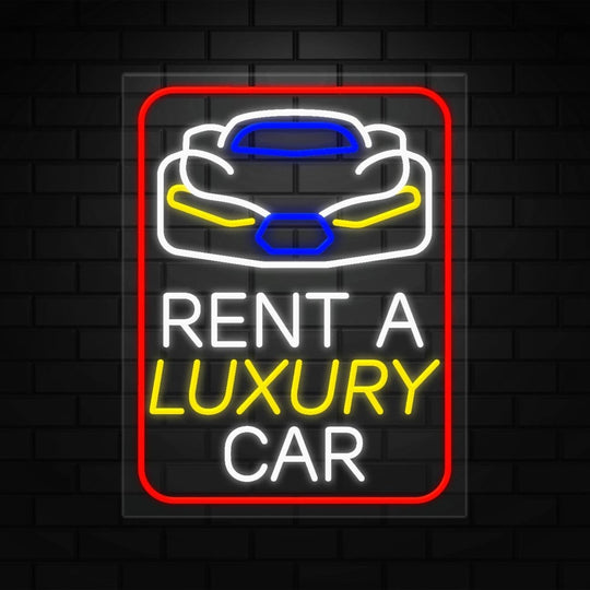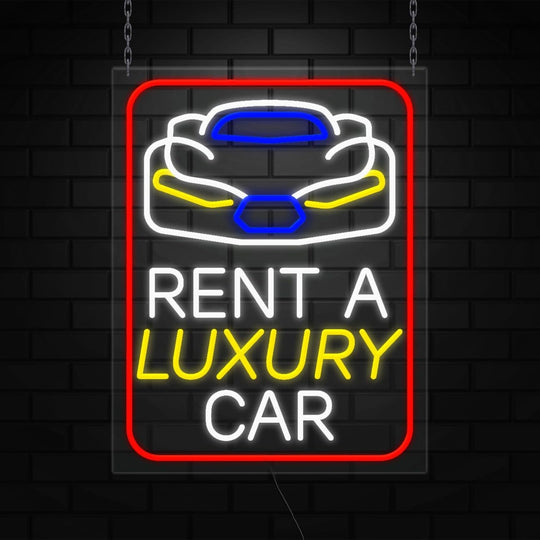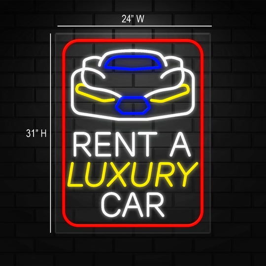 Rent A Luxury Car Sign for Retail Displays | LED Flex Neon | 24"W x 31"H x 1"D