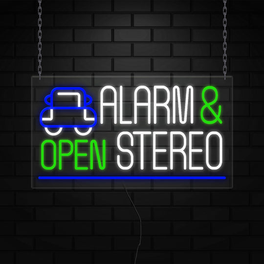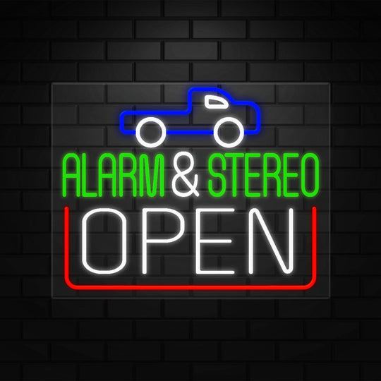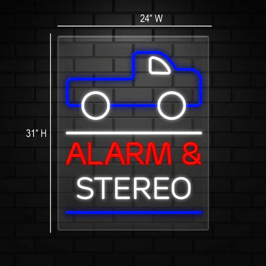Alarm & Sterio Neon Sign for Retail Displays | LED Flex Neon | 31"W x 24"H x 1"D