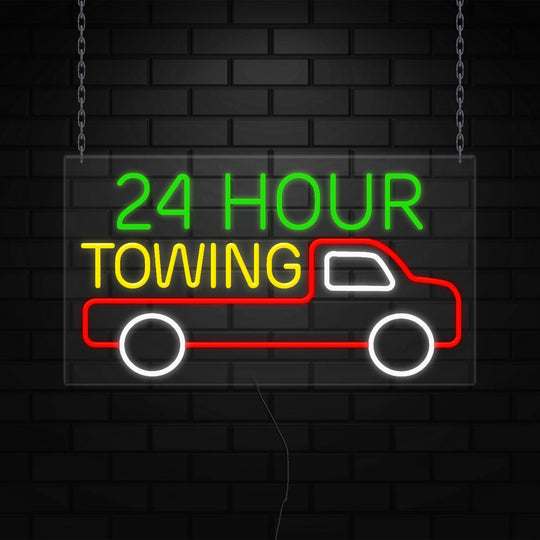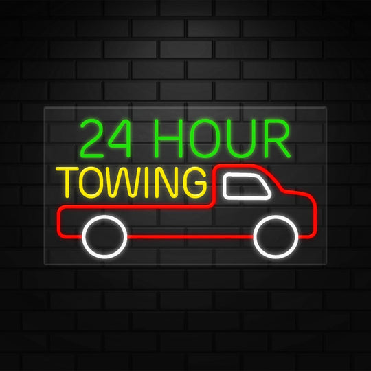 24 hr Towing Sign for Business Displays | LED Flex Neon | 37"W x 20"H x 1"D