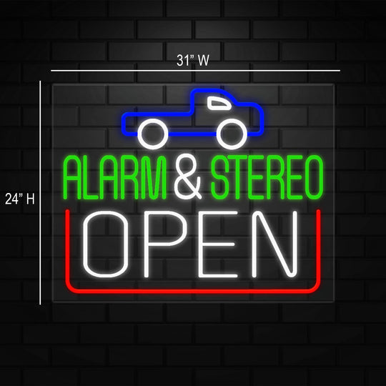 Alarm & Stereo Sign for Business Displays | LED Flex Neon | 24"W x 31"H x 1"D