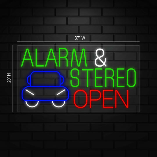 Alarm & Stereo Neon Sign for Retail Display | LED Flex Neon | 37"W x 20"H x 1"D