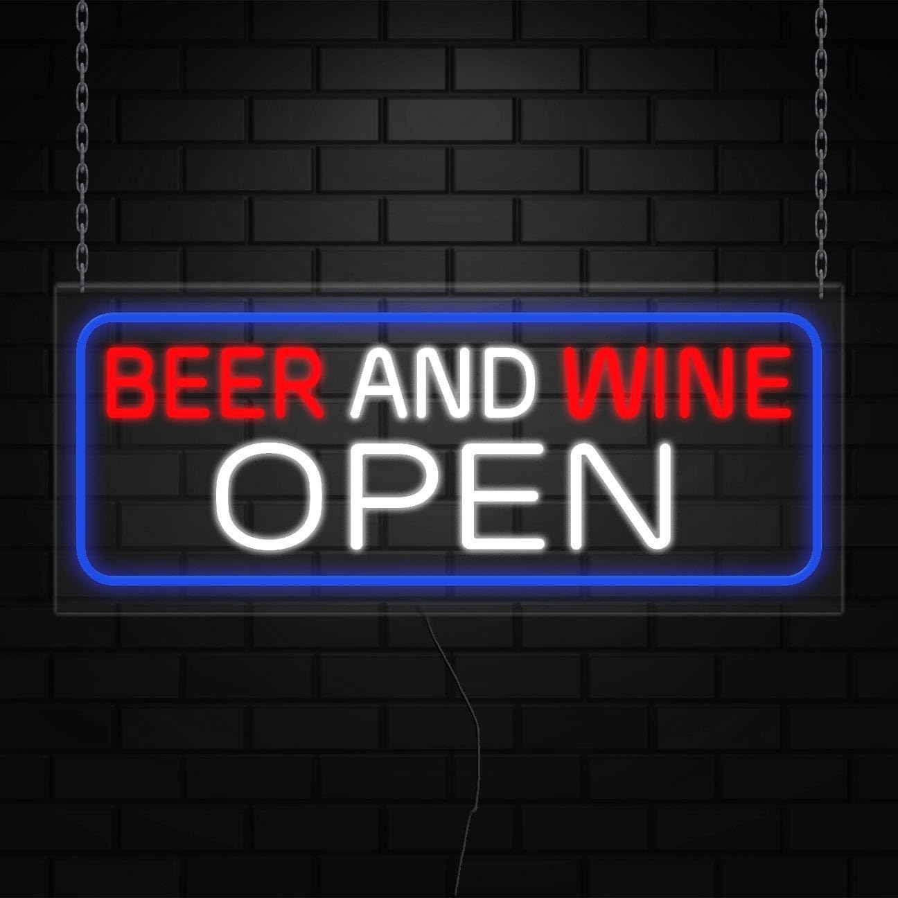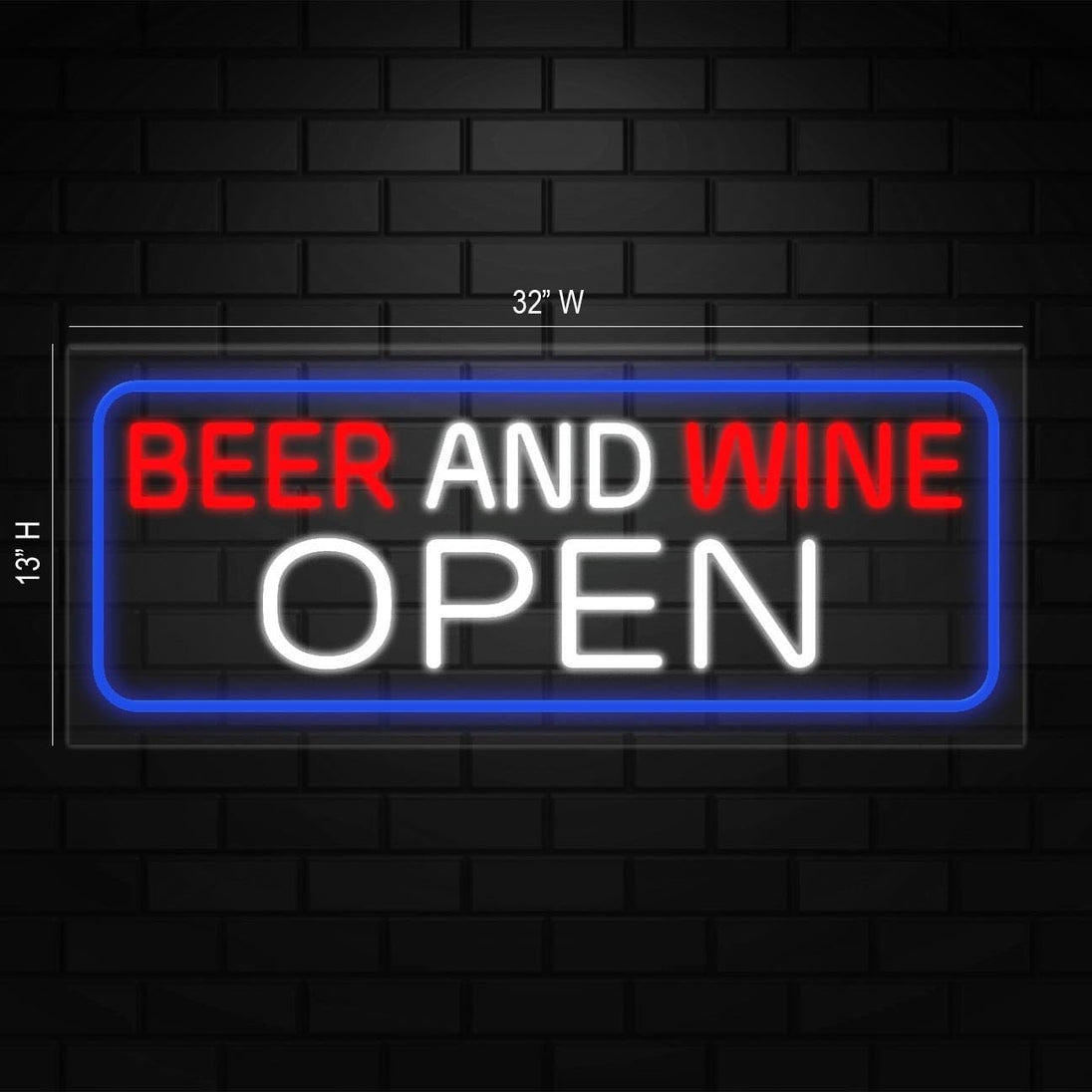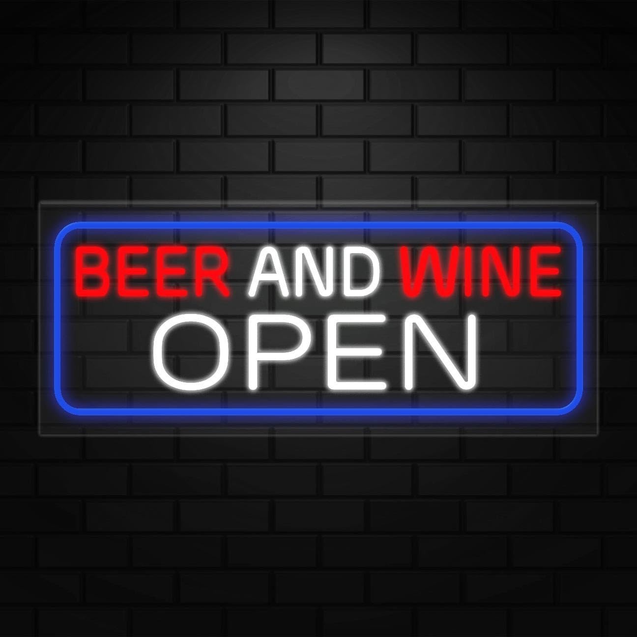 Beer And Wine Open Neon Sign for Displays | LED Flex Neon | 32"W x 13"H x 1"D