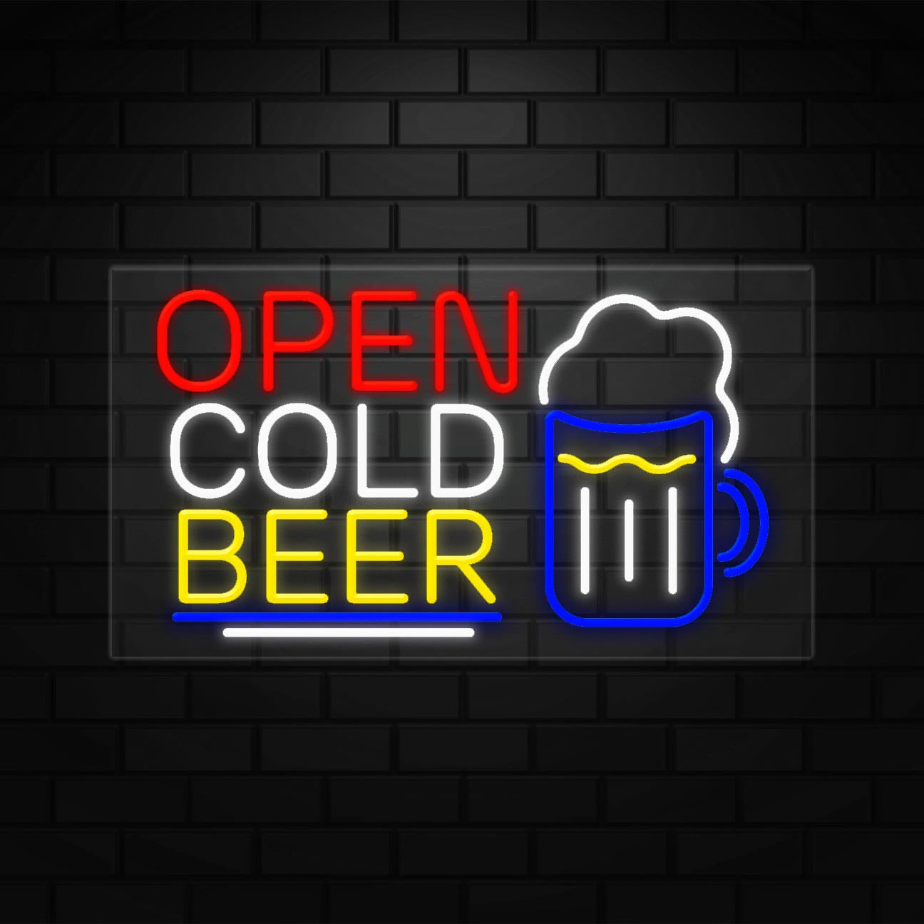 Open Cold Beer Neon Sign for Retail Displays | LED Flex Neon | 37"W x 20"H x 1"D