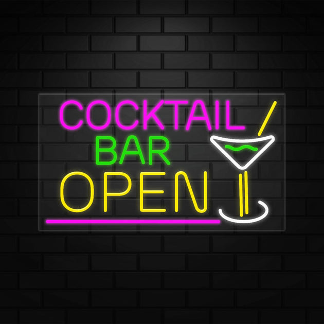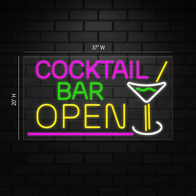 Cocktail Bar Open Sign for Retail Displays | LED Flex Neon | 37"W x 20"H x 1"D