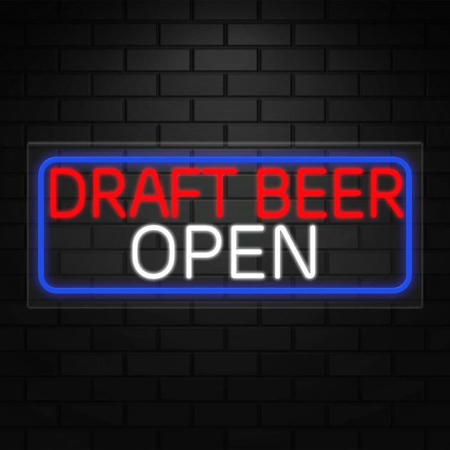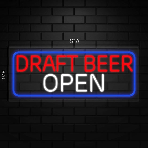 Draft Beer Open Neon Sign for Retail Displays | LED Flex Neon |32"W x 13"H x 1"D