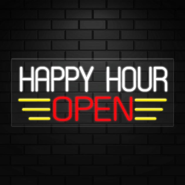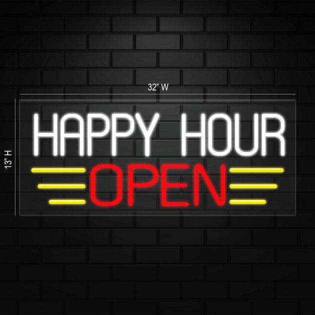 Happy Hour Open Neon Sign for Retail Displays | LED Flex Neon |32"W x 13"H x 1"D