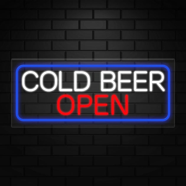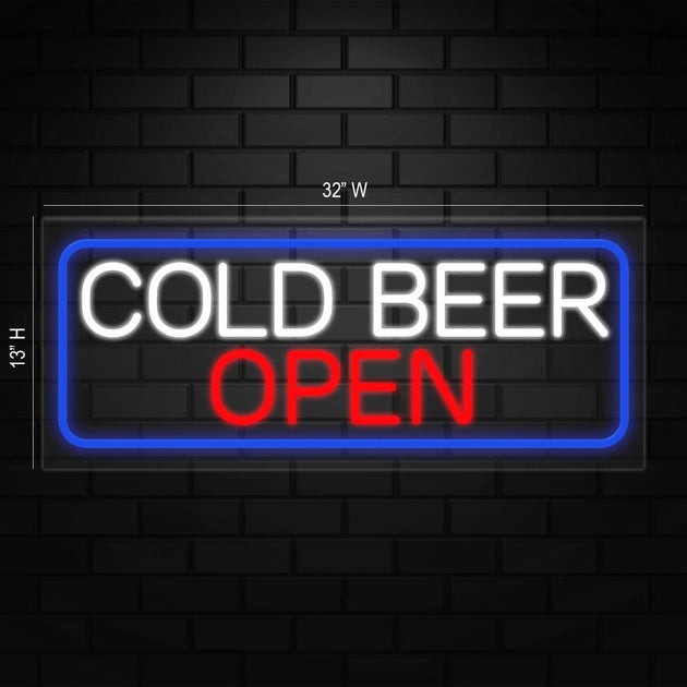 Cold Beer Open Neon Sign for Retail Displays | LED Flex Neon | 32"W x 13"H x 1"D
