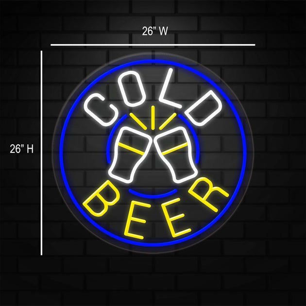 Cold Beer Neon Sign for Retail Displays | LED Flex Neon | 26"W x 26"H x 1"D