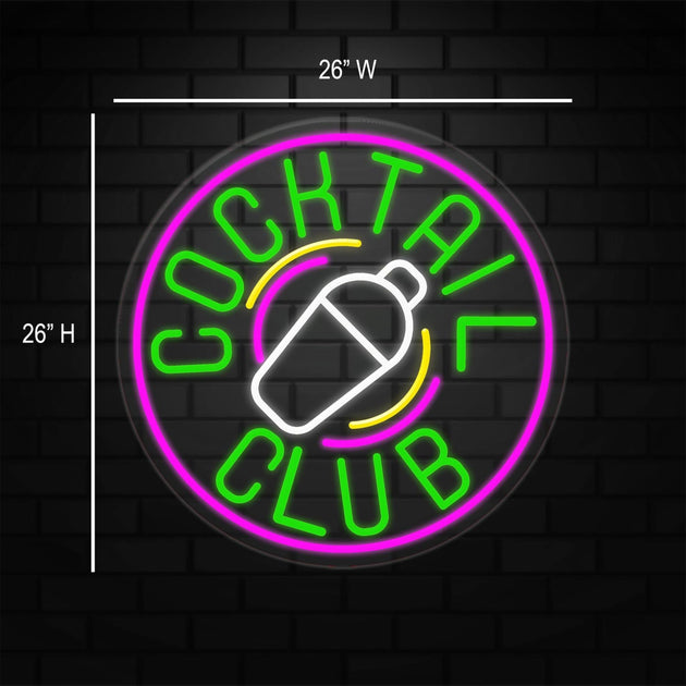 Cocktail Club Neon Sign for Retail Displays | LED Flex Neon | 26"W x 26"H x 1"D