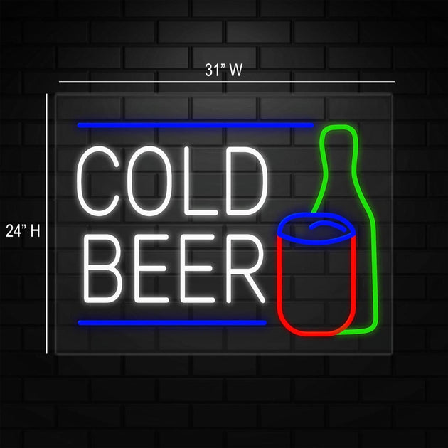 Cold Beer Neon Sign for Retail Displays | LED Flex Neon | 31"W x 24"H x 1"D
