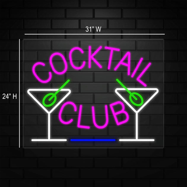 Cocktail Club Neon Sign for Retail Displays | LED Flex Neon | 31"W x 24"H x 1"D