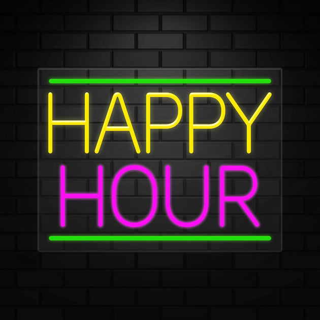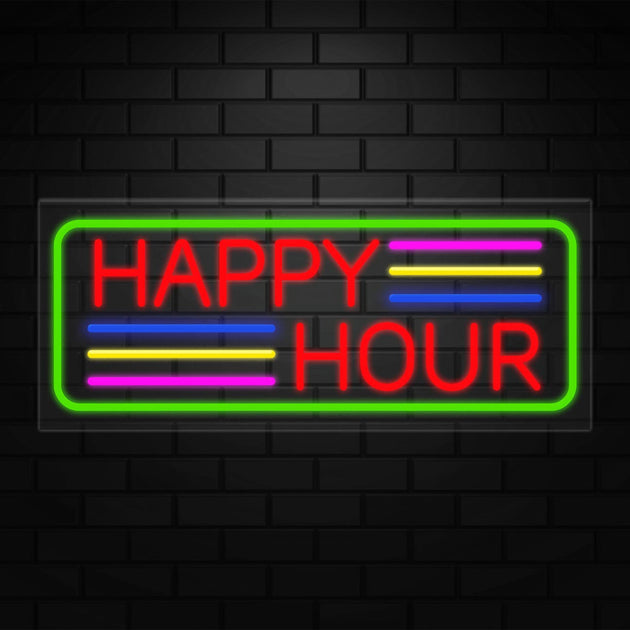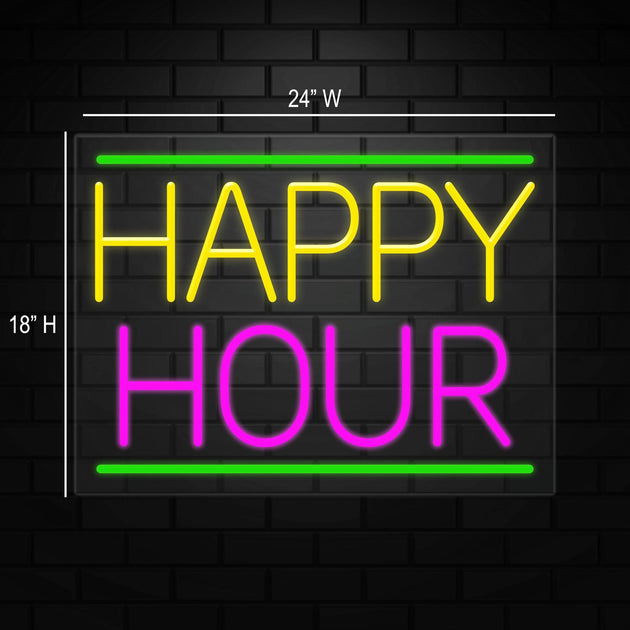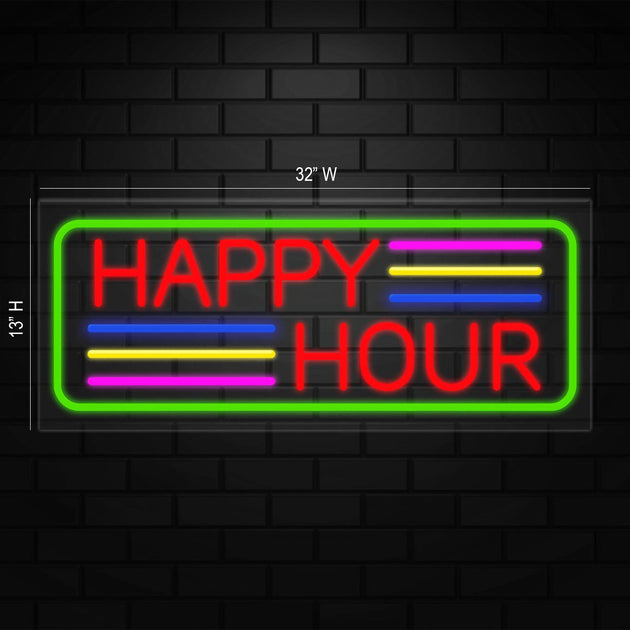 Happy Hour Sign for Business Displays | LED Flex Neon | 32"W x 13"H x 1"D