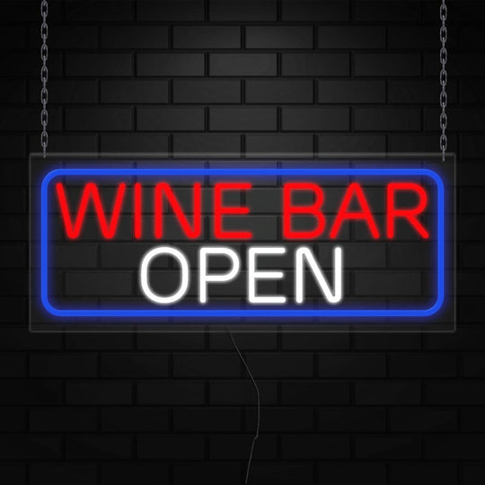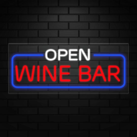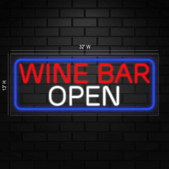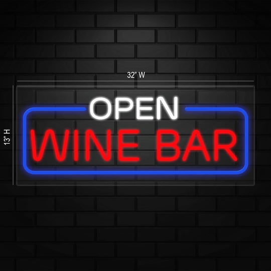 Open Wine Bar Neon Sign for Retail Displays | LED Flex Neon | 32"W x 13"H x 1"D