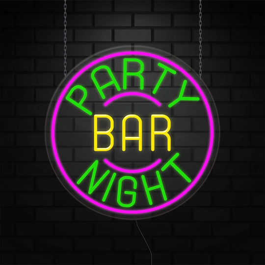Party Night Bar Neon Sign for Retail Displays | LED Flex Neon |26"W x 26"H x 1"D