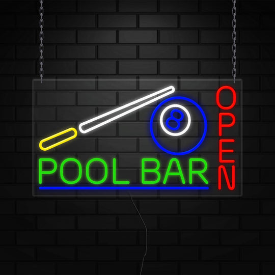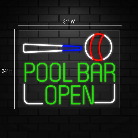 Pool Bar Open Sign for Retail Displays | LED Flex Neon | 31"W x 24"H x 1"D