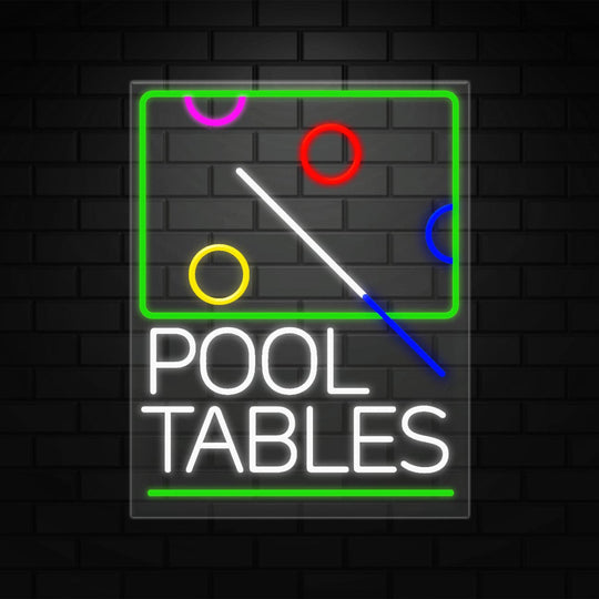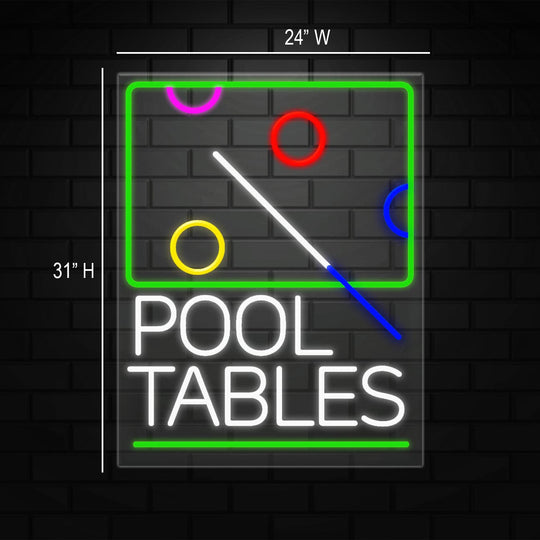 Pool Tables Sign for Business Displays | LED Flex Neon | 24"W x 31"H x 1"D