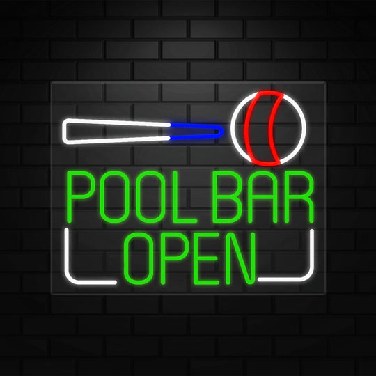 Pool Bar Open Neon Sign for Retail Displays | LED Flex Neon | 37"W x 20"H x 1"D