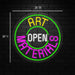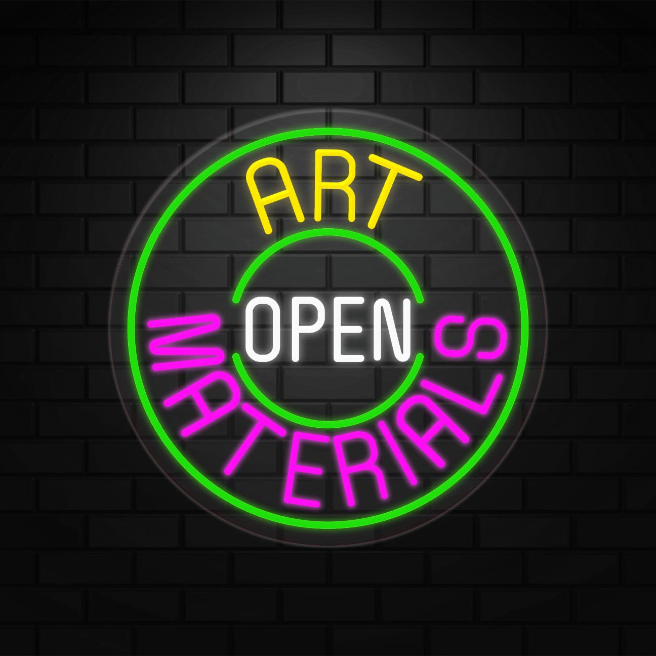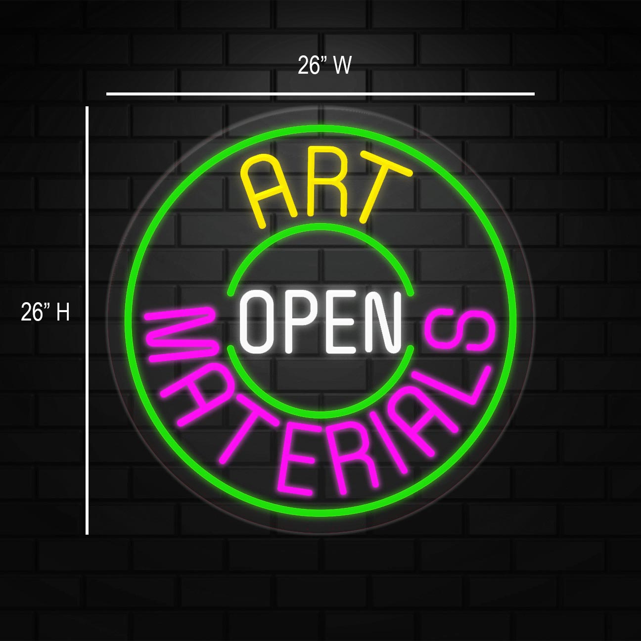 Art Materials Open Sign for Business Display | LED Flex Neon | 26"W x 26"H x 1"D