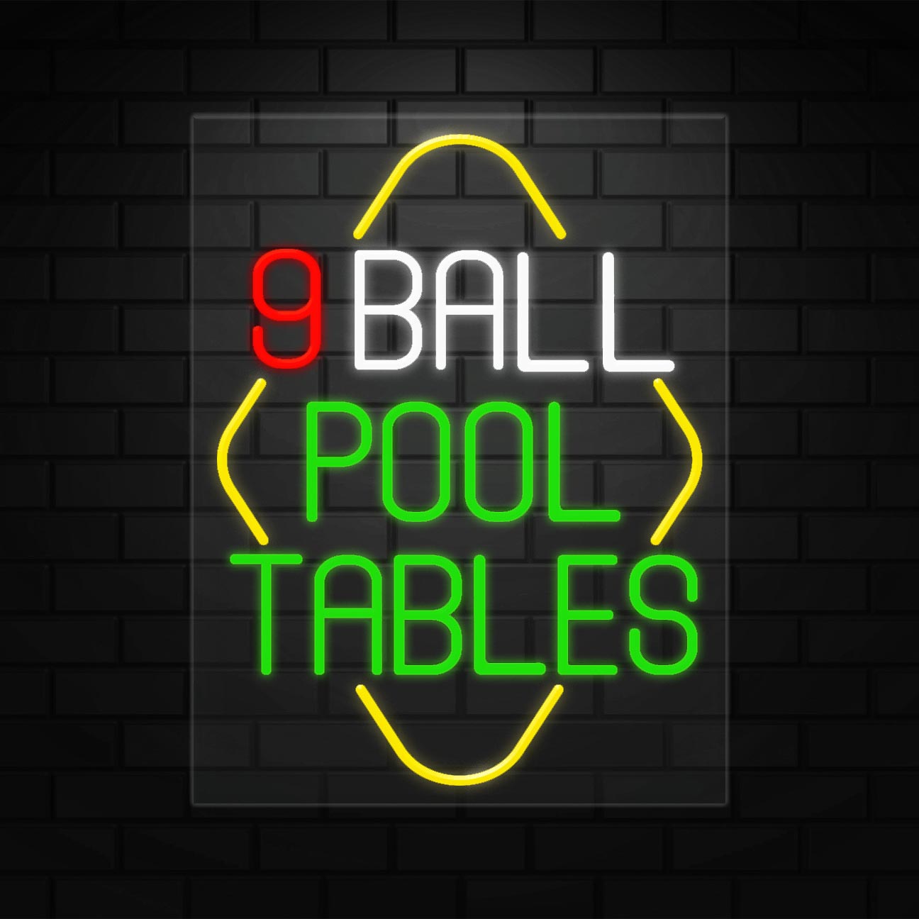 9 Ball Pool Tables Sign for Business Displays | LED Flex Neon |24"W x 31"H x 1"D