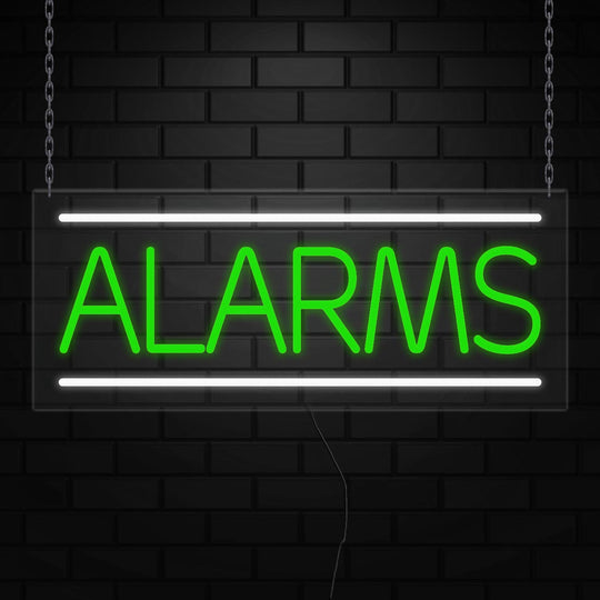 Alarms Sign for Business Displays | LED Flex Neon | 32"W x 13"H x 1"D