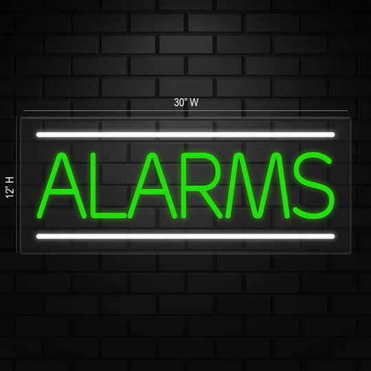 Alarms Sign for Retail Displays | LED Flex Neon | 30"W x 12"H x 1"D