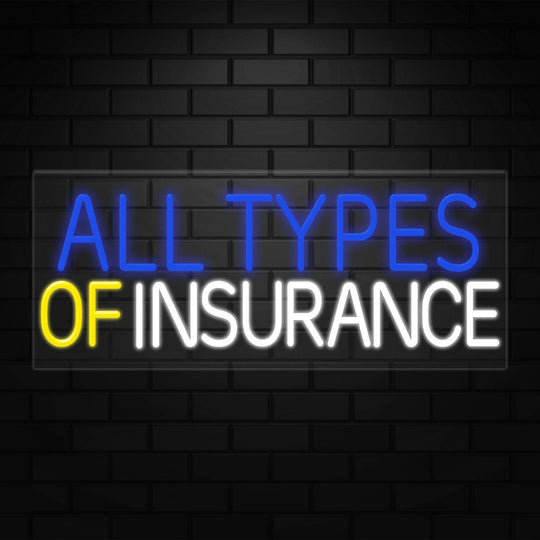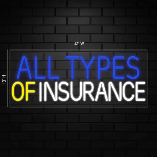 All Types of Insurance Sign for Business | LED Flex Neon | 32"W x 13"H x 1"D