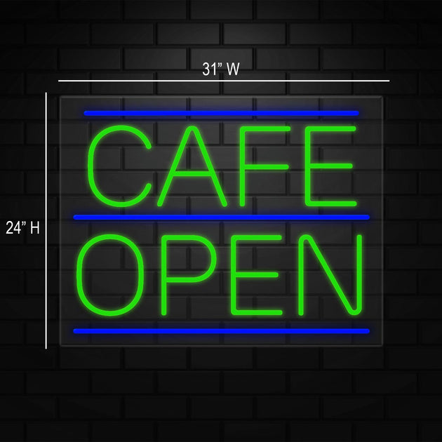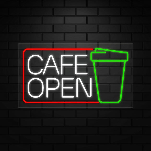 Café Open Neon Sign for Retail Display | LED Flex Neon | 37"W x 20"H x 1"D
