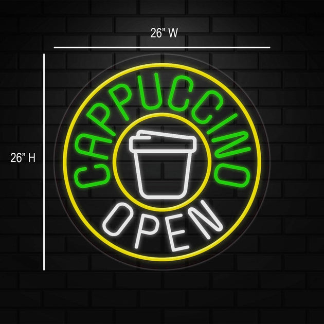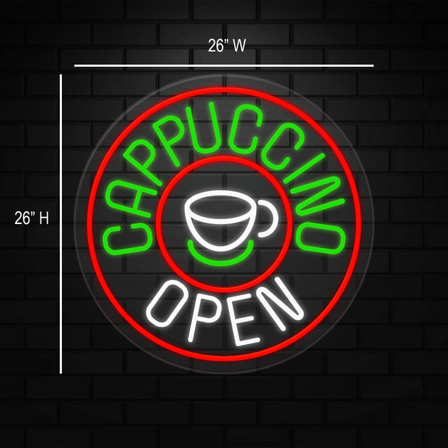 Cappuccino Open Sign for Business Displays | LED Flex Neon | 26"W x 26"H x 1"D