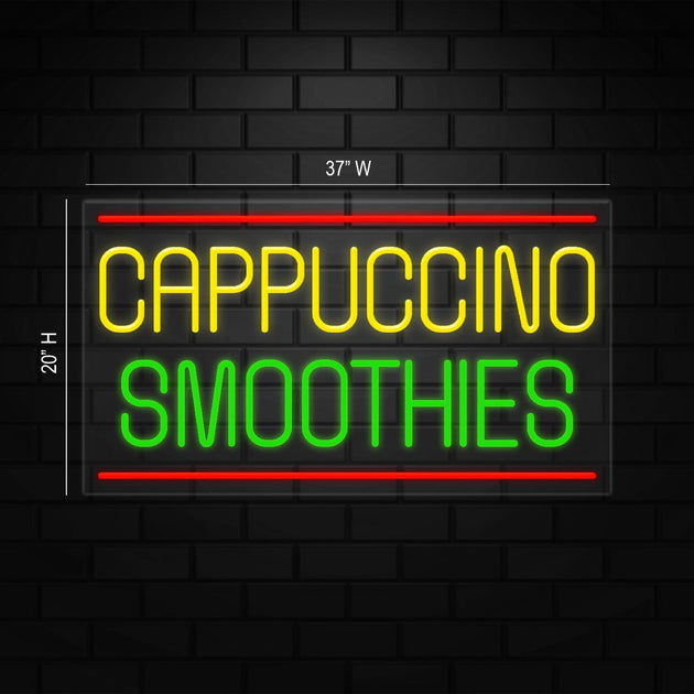 Cappuccino Smoothies Sign for Business | LED Flex Neon | 37"W x 20"H x 1"D