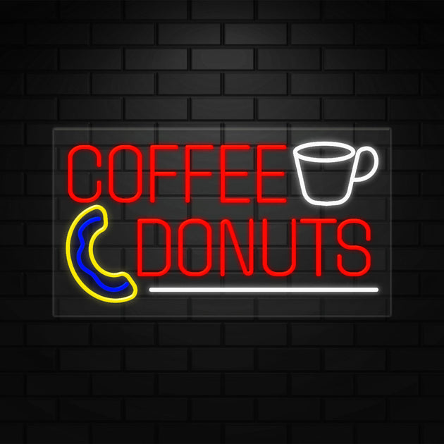 Coffee & Donuts Sign for Retail Displays | LED Flex Neon | 37"W x 20"H x 1"D