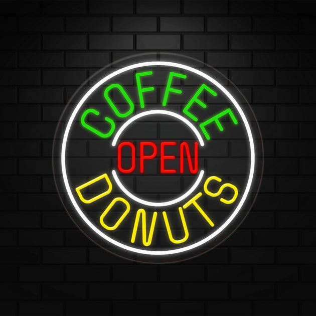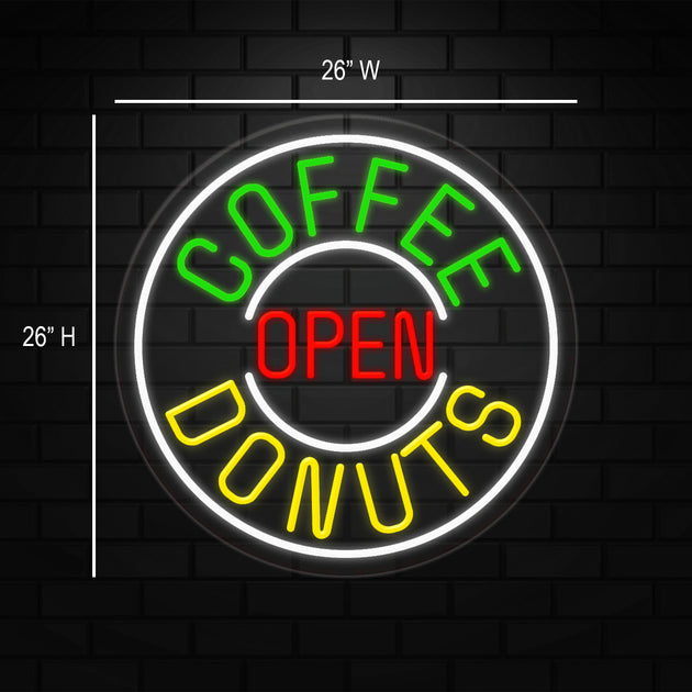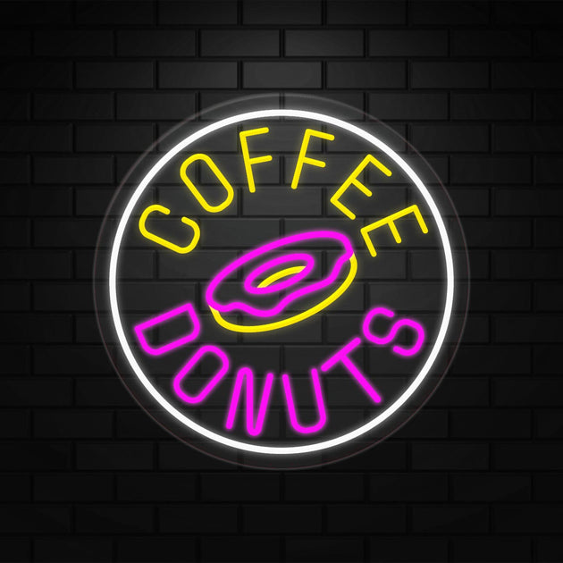 Coffee Donuts Sign for Business Displays | LED Flex Neon | 26"W x 26"H x 1"D