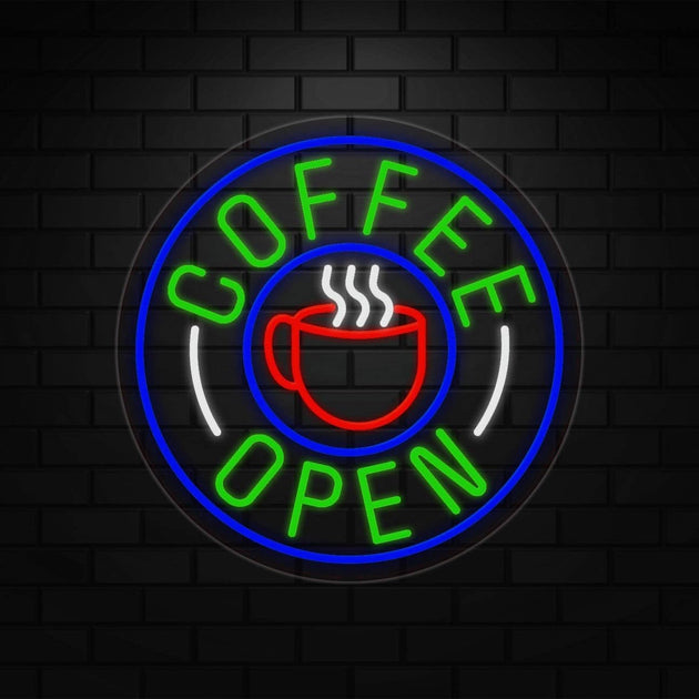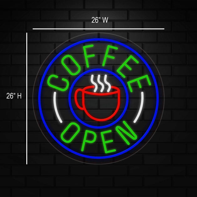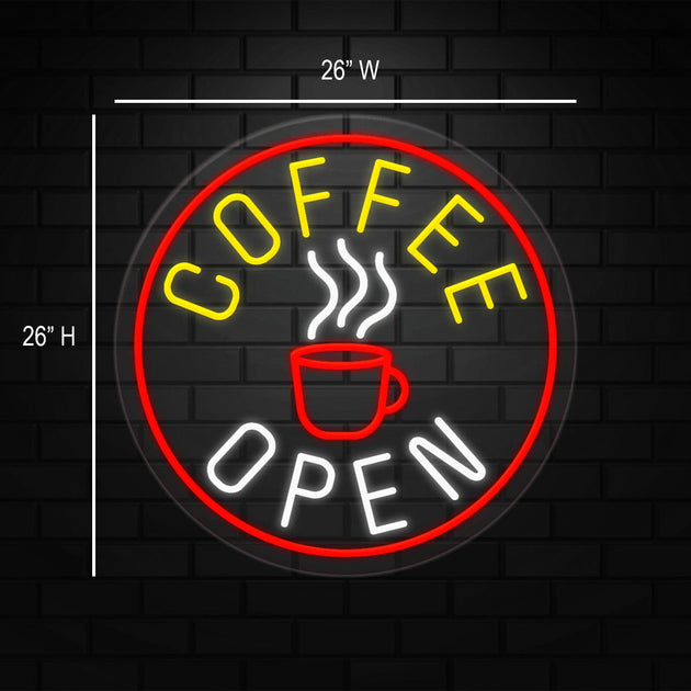 Coffee Open Sign for Business Displays | LED Flex Neon | 26"W x 26"H x 1"D