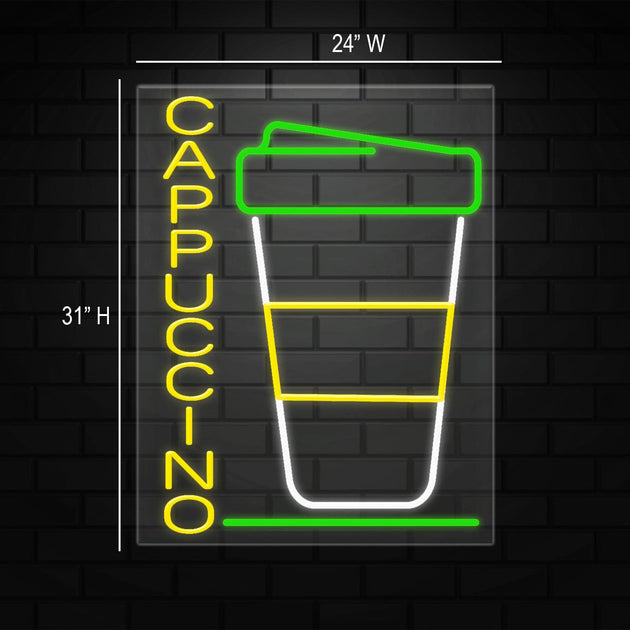 Cappuccino Coffee Sign for Retail Displays | LED Flex Neon | 26"W x 26"H x 1"D