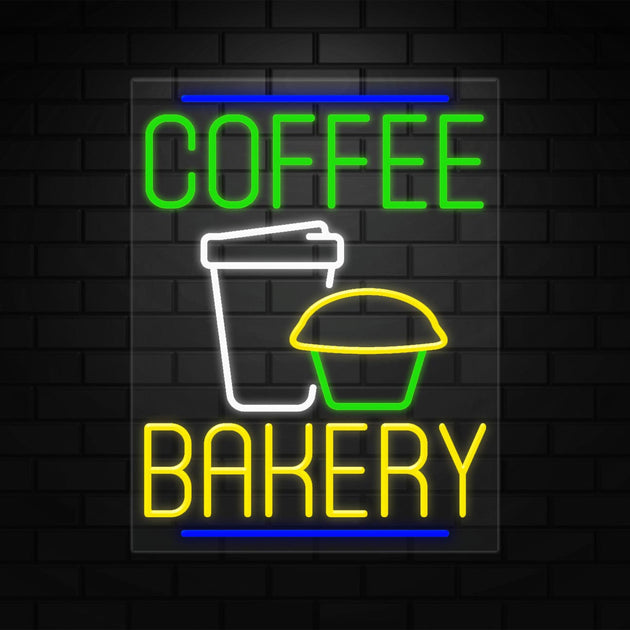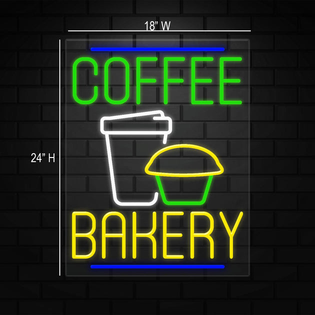 Coffee Bakery Sign for Business Displays | LED Flex Neon | 24"W x 31"H x 1"D