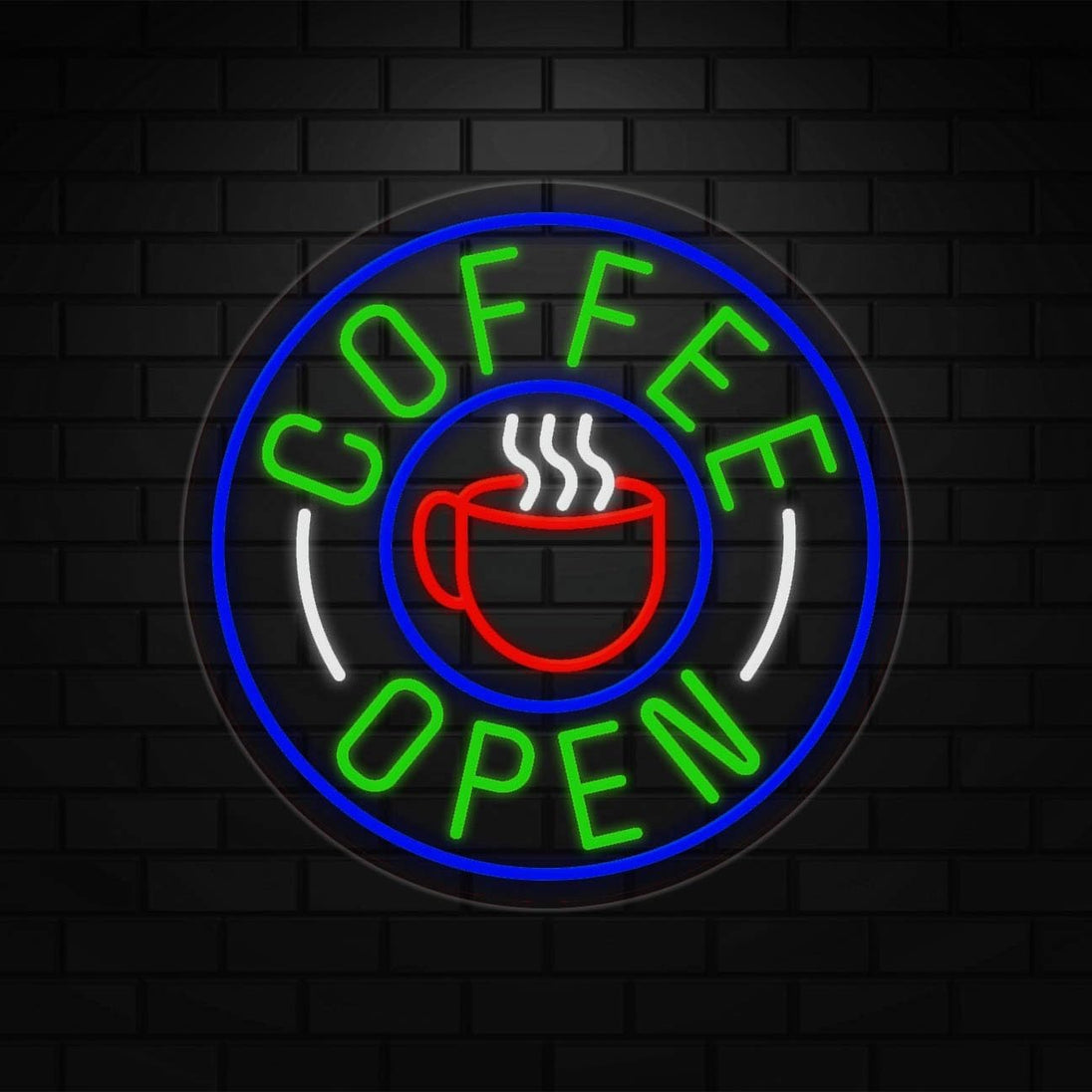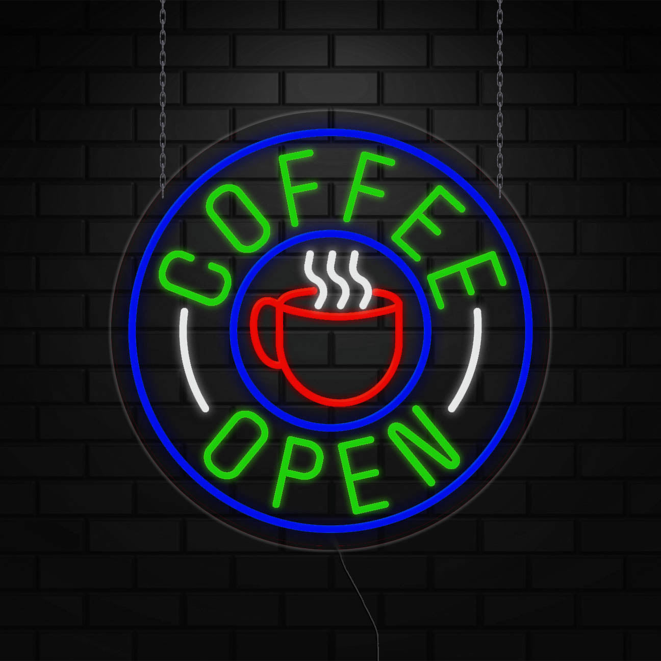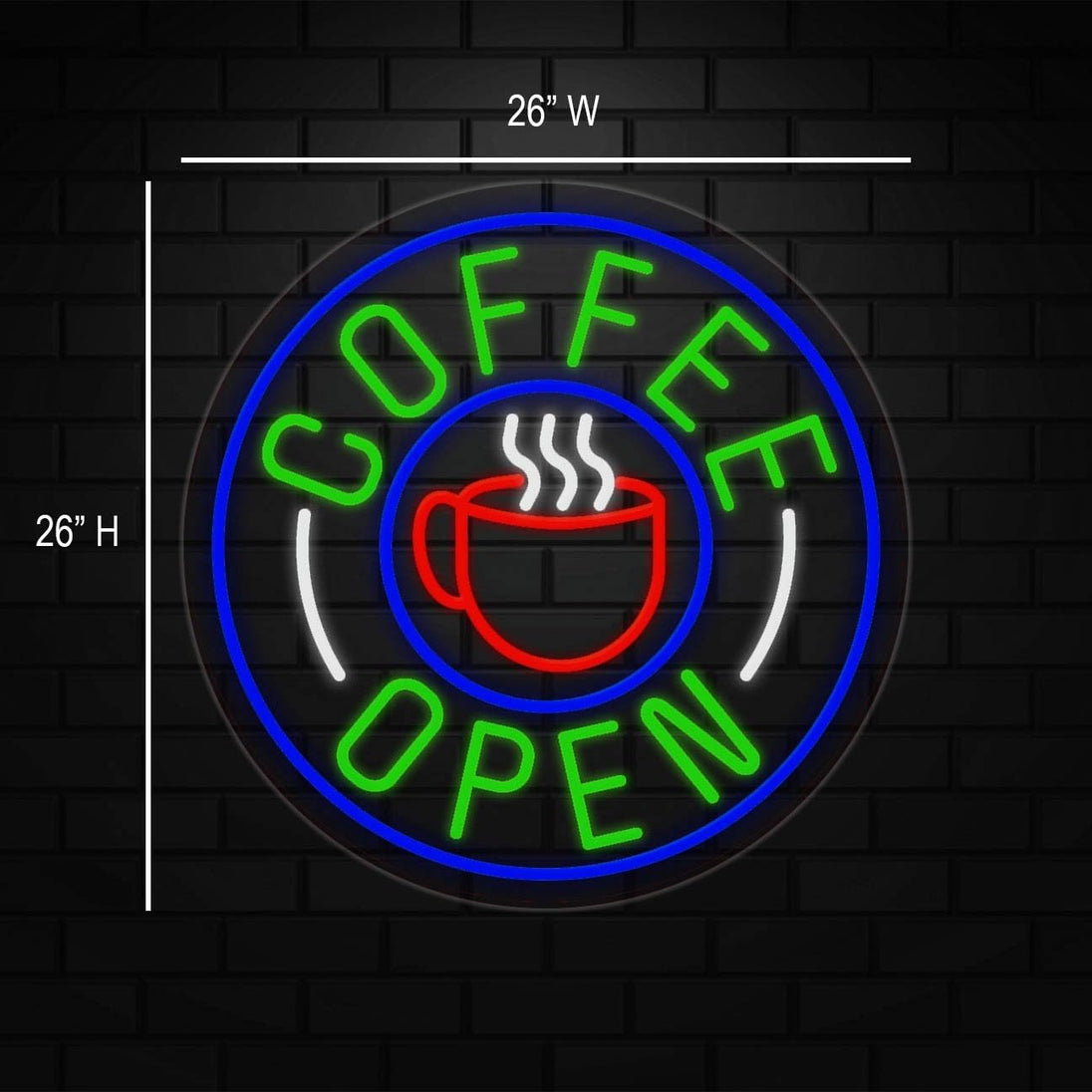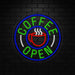 Coffee Open Neon Sign for Retail Displays | LED Flex Neon | 26"W x 26"H x 1"D
