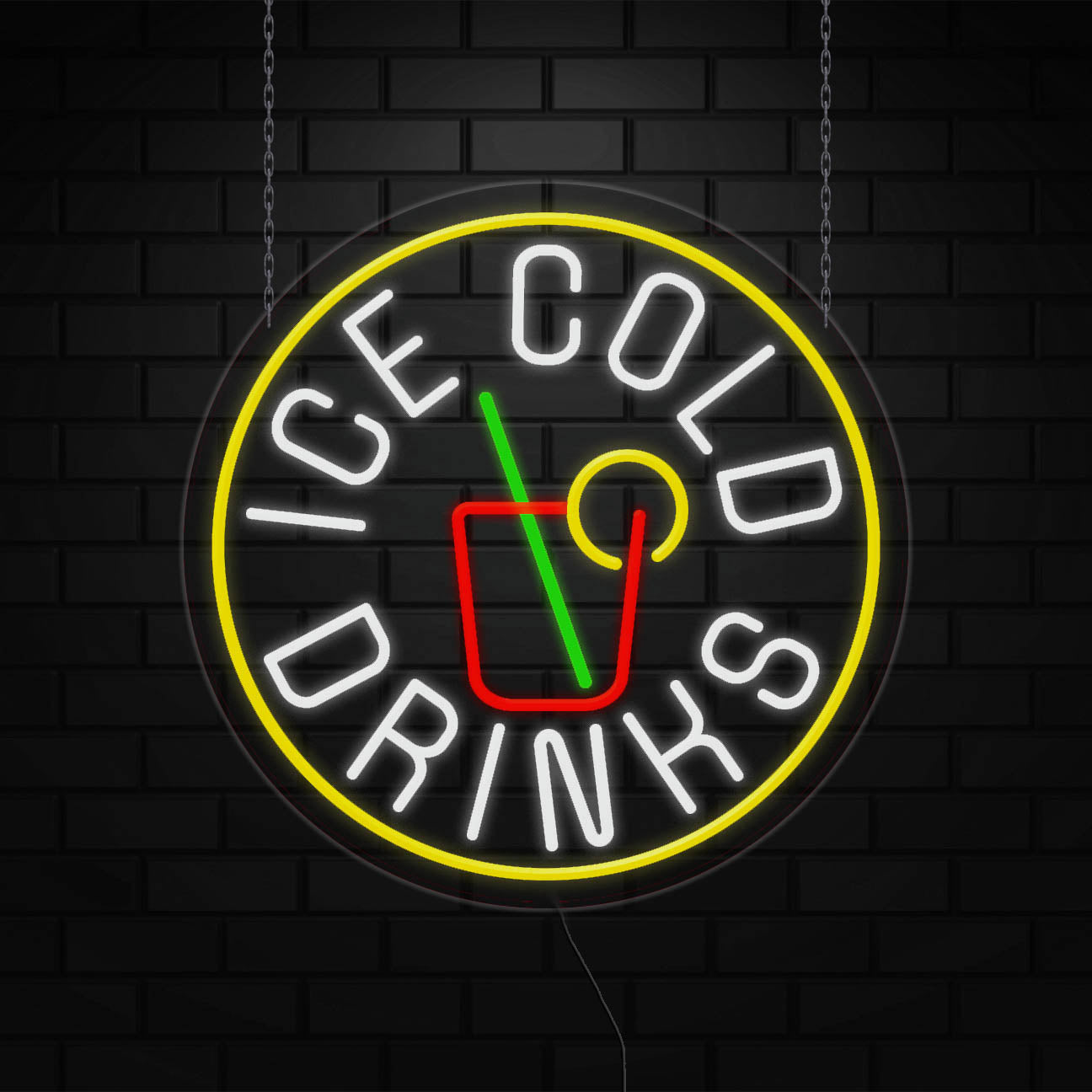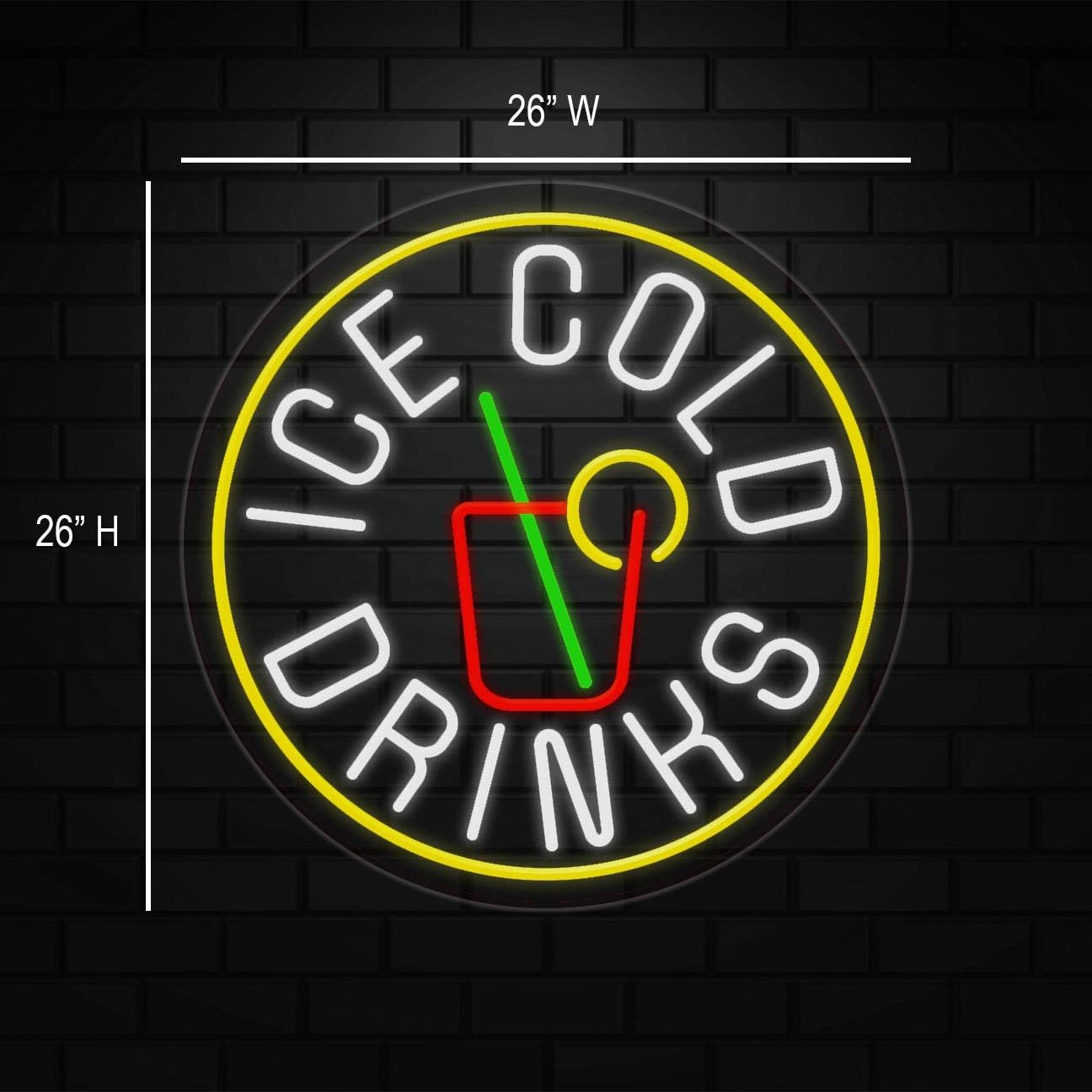 Ice Cold Drinks Open Sign for Retail Displays | LED Flex Neon |26"W x 26"H x 1"D