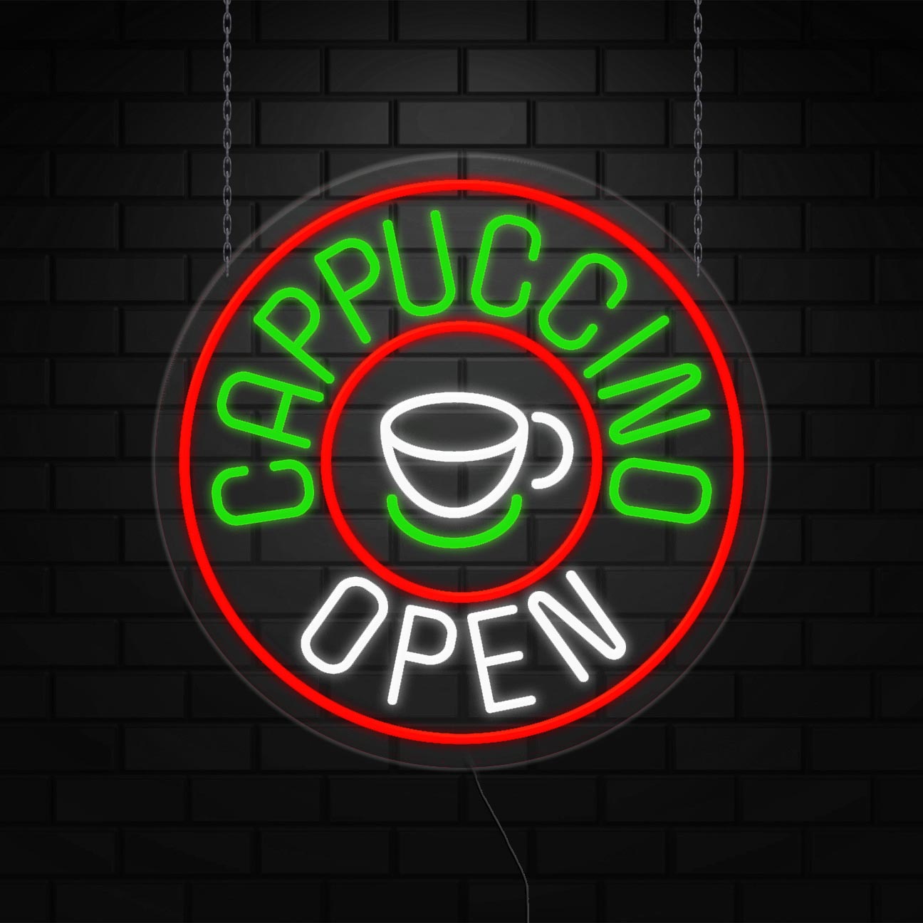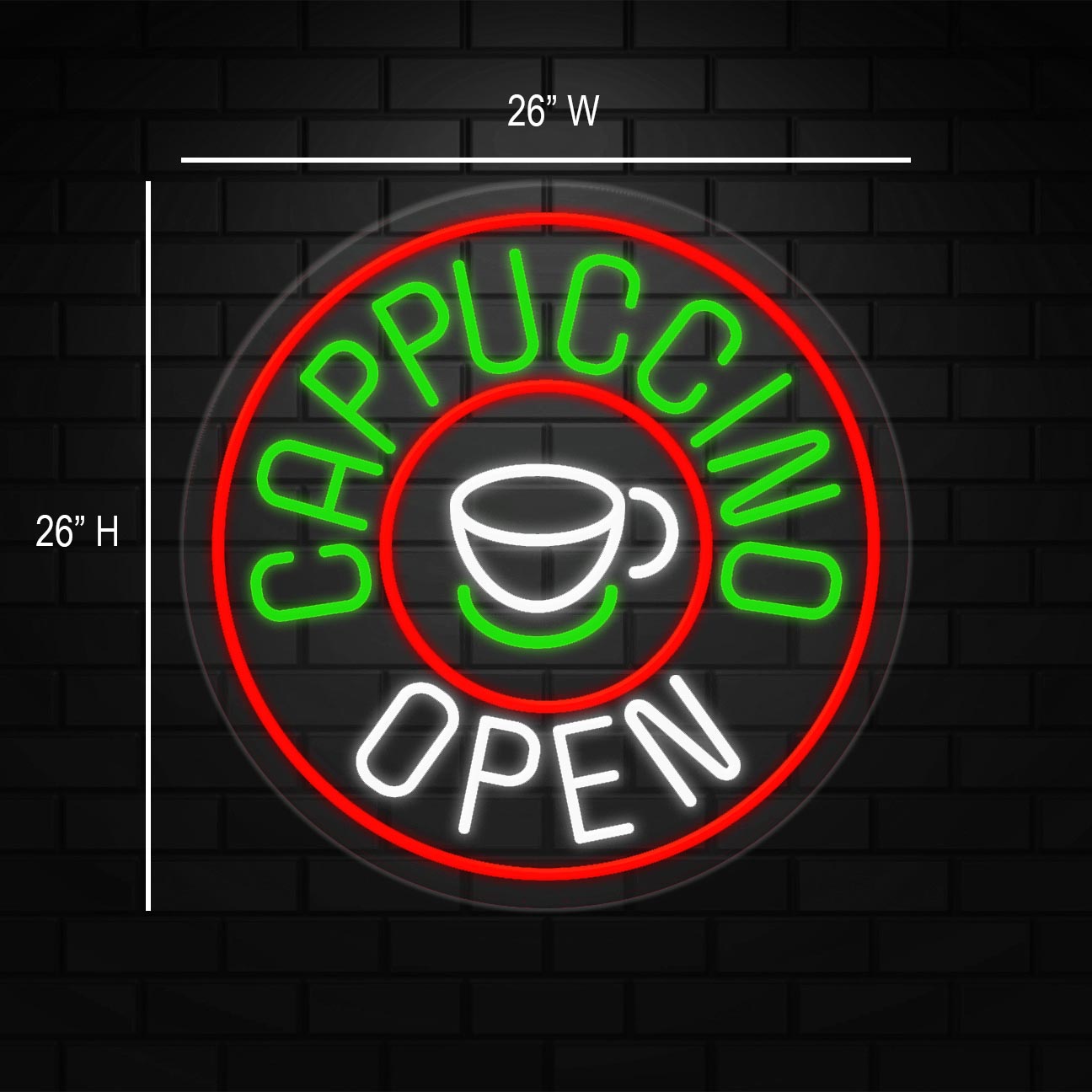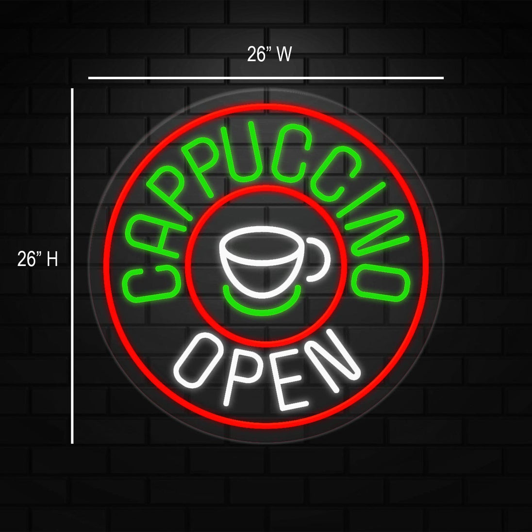 Cappuccino Open Sign for Business Displays | LED Flex Neon | 26"W x 26"H x 1"D