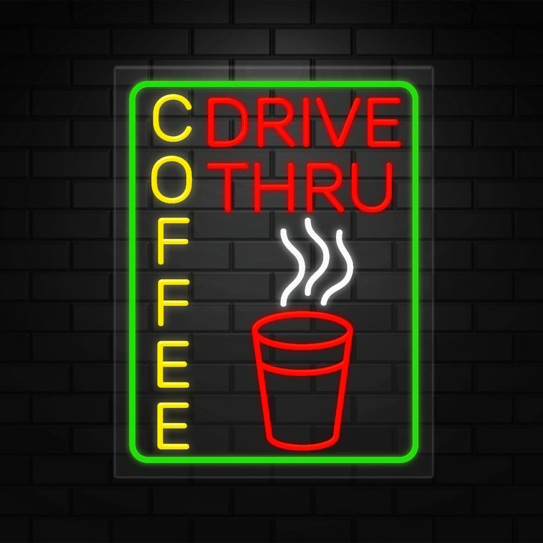 Coffee Drive Thru Sign for Business Display | LED Flex Neon | 24"W x 31"H x 1"D