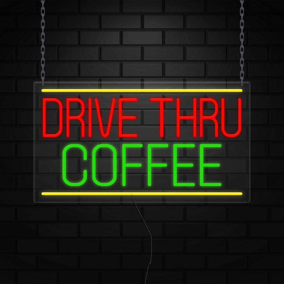 Drive Thru Coffee Sign for Business Display | LED Flex Neon | 37"W x 20"H x 1"D