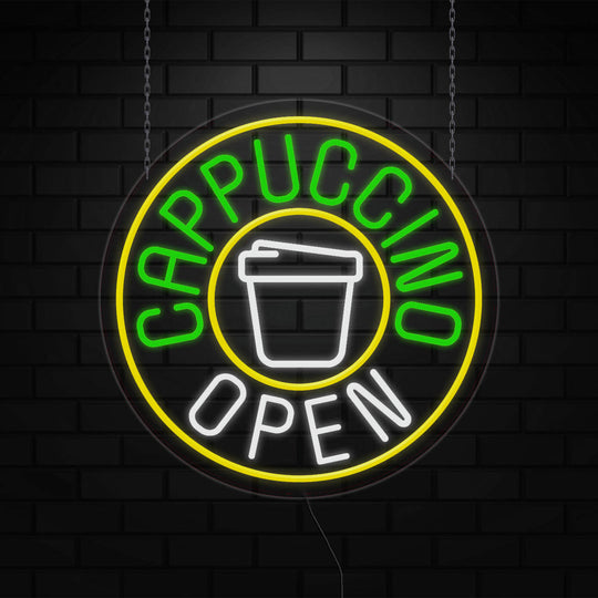 Cappuccino Open Sign for Retail Displays | LED Flex Neon | 26"W x 26"H x 1"D