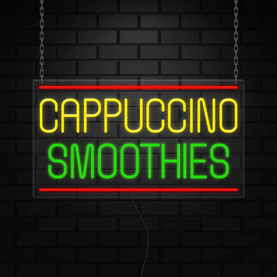 Cappuccino Smoothies Sign for Business | LED Flex Neon | 37"W x 20"H x 1"D