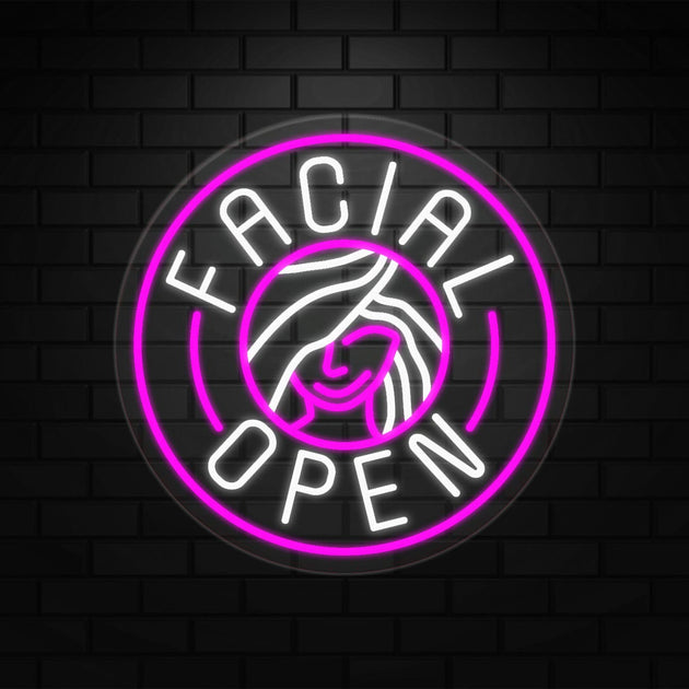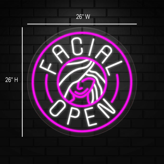 Facial Waxing Open Sign for Business Display | LED Flex Neon | 26"W x 26"H x 1"D