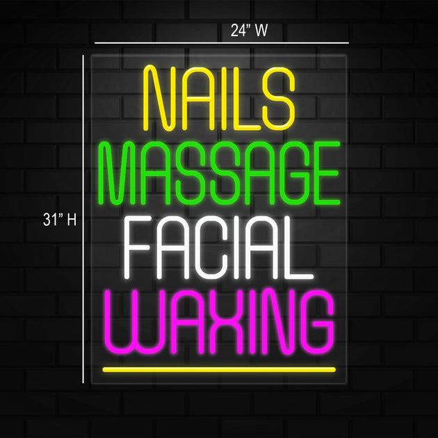 Nails Facial Waxing Massage Sign | LED Flex Neon | 24"W x 31"H x 1"D