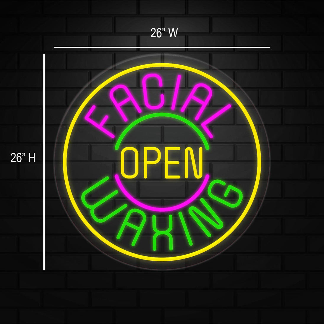 Facial Waxing Open Sign for Business Display | LED Flex Neon | 26"W x 26"H x 1"D