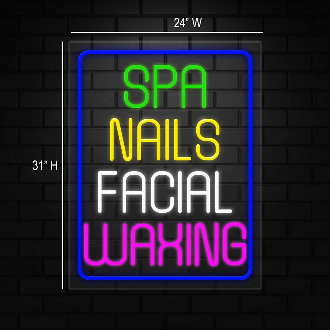 Spa Nails Facial Waxing Sign for Displays | LED Flex Neon | 24"W x 31"H x 1"D