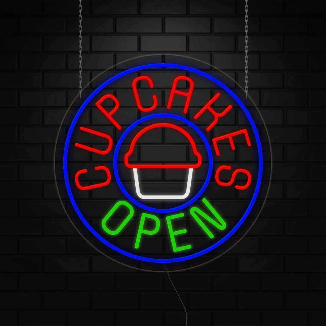 Cupcakes Open Neon Sign for Retail Displays | LED Flex Neon | 26"W x 26"H x 1"D