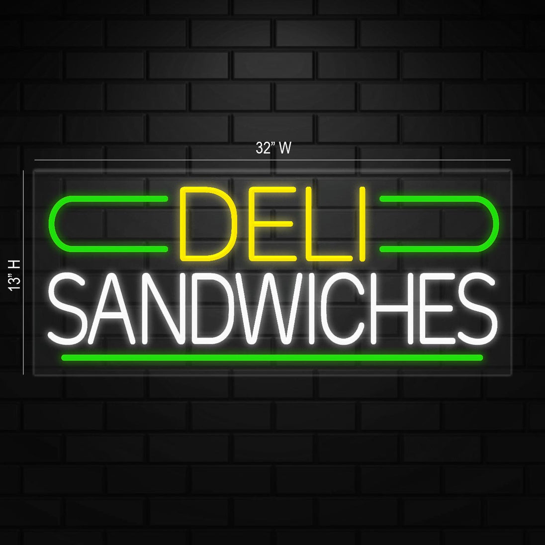 Deli Sandwiches Sign for Business Displays | LED Flex Neon | 36"W x 15"H x 1"D