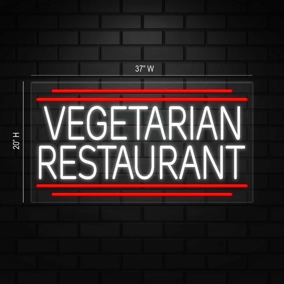 Vegetarian Restaurant Sign for Retail Displays |LED Flex Neon |37"W x 20"H x 1"D