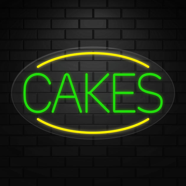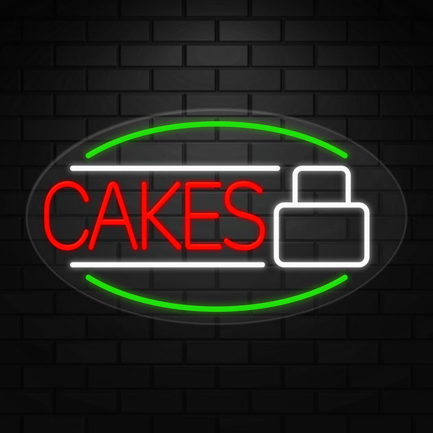 Cakes Sign for Business Displays | LED Flex Neon | 30"W x 17"H x 1"D