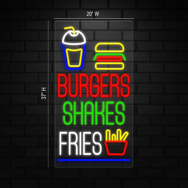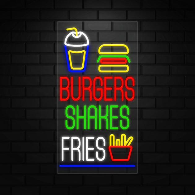 Burgers Shakes Fries Sign for Window Display | LED Flex Neon | 20"W x 37" x 1"D